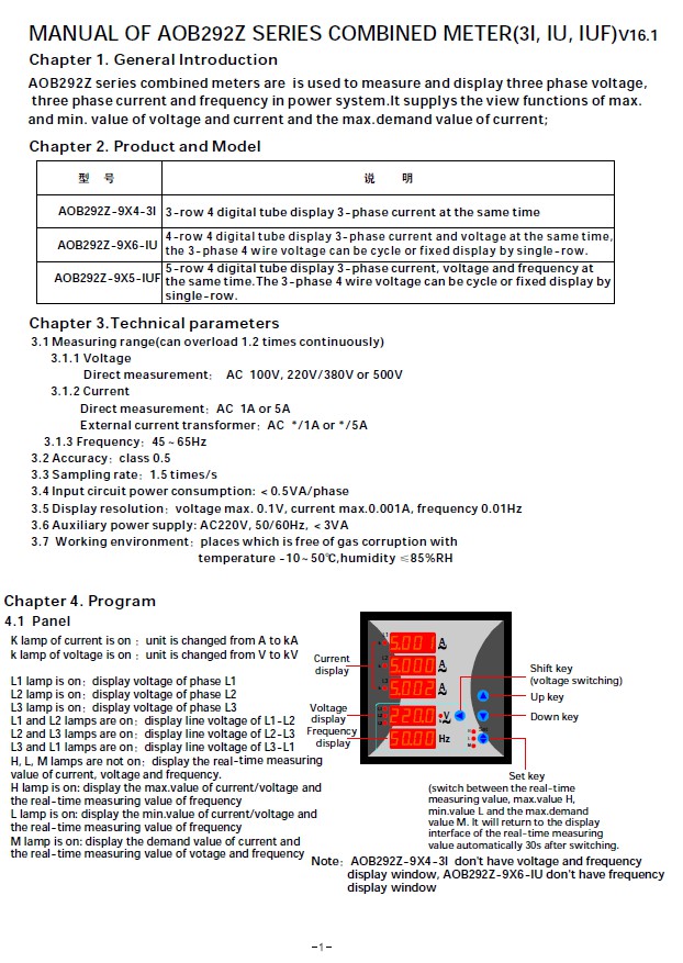 พาแนลมิเตอร์ 380v 3เฟส ขนาด 96x96mm ดิจิตอล กระแส แอมป์ x3 แรงดัน โวลท์ x1 ความถี่ x1 (V-A-Hz) มัลติฟังก์ชันมิเตอร์