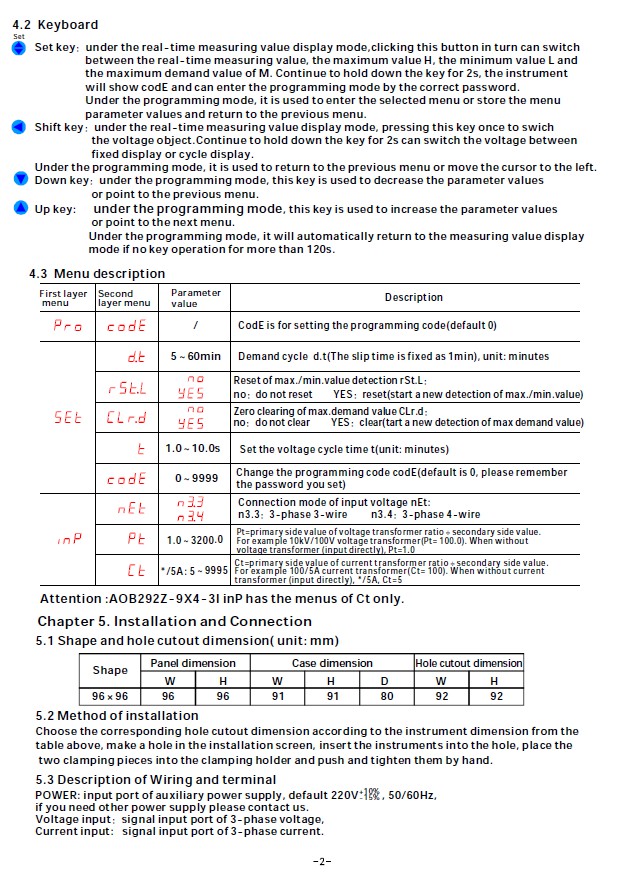 380Vac 3 เฟส มัลติโวลต์มิเตอร์ดิจิตอล (96x96)