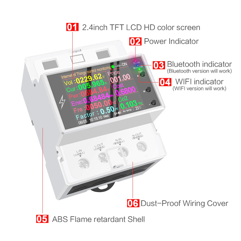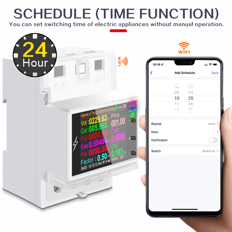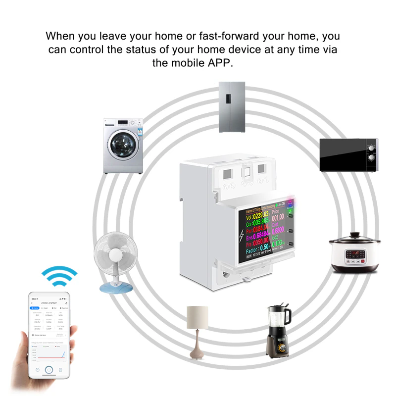 Smart Meter Wifi : เป็นมิเตอร์ไฟฟ้าที่สามารถวัดพลังงานไฟฟ้าได้ผ่านแอพ พร้อมเก็บประวัติไว้ สามารถดูได้ผ่านแอป TuyaSmart หรือ Smart Life